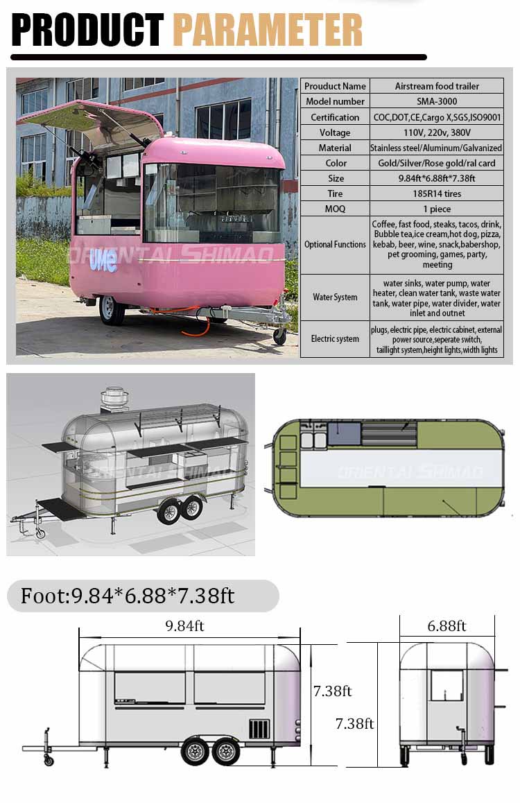 Kami boleh menawarkan pensijilan treler makanan Airstream: Dot, CE, SGS, SCI, ISO, CoC,