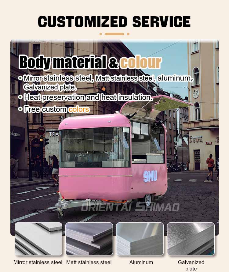 Untuk bahan utama, kami memilih keluli tahan karat 304 berkualiti tinggi, yang terkenal dengan ketahanan kakisan yang sangat baik dan ketahanan yang sangat baik, dan dapat mengekalkan prestasi yang stabil dalam pelbagai keadaan alam sekitar, memastikan produk treler makanan udara kami dapat mengekalkan kualiti dan fungsi mereka yang sangat baik walaupun dalam jangka panjang dan menghadapi pelbagai cabaran. 304 Rintangan Stainless Steel yang sangat baik terhadap kakisan, supaya trak itu tidak mudah dipengaruhi oleh pengoksidaan atau karat, yang sangat memanjangkan hayat perkhidmatannya. Rintangan kakisan yang sangat baik dari 304 keluli tahan karat menjadikan trak kurang terdedah kepada pengoksidaan atau karat, sangat memanjangkan hayat perkhidmatan mereka.