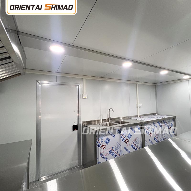 Susun atur dalaman: Perancangan yang munasabah dapur, ruang makan, kawasan penyimpanan dan kawasan lain untuk memastikan penggunaan ruang maksimum. Pada masa yang sama, kawasan berfungsi yang berbeza ditubuhkan mengikut keperluan perniagaan, seperti kawasan pengeluaran, kawasan pemanasan, kawasan jualan, dan lain -lain, untuk memudahkan operasi dan meningkatkan kecekapan operasi.