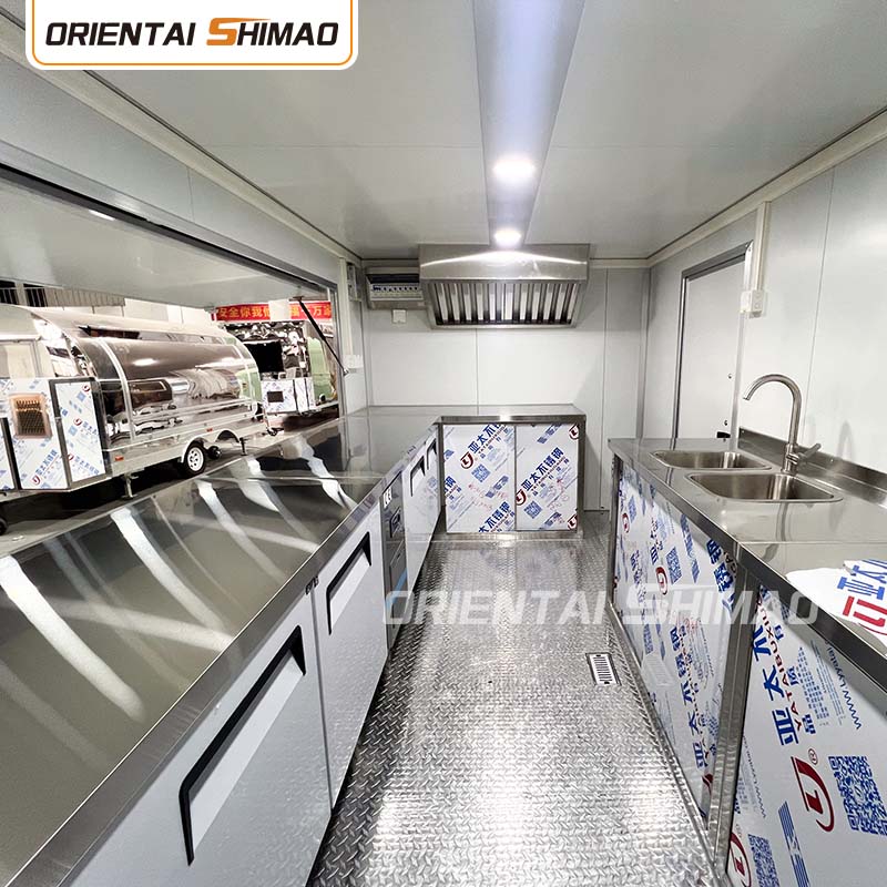 Pengoptimuman Ruang: Menggunakan sepenuhnya ruang dalaman trak makanan, dan meningkatkan penggunaan ruang melalui reka bentuk berbilang tingkat, perabot yang boleh dilipat atau gelongsor, dll.