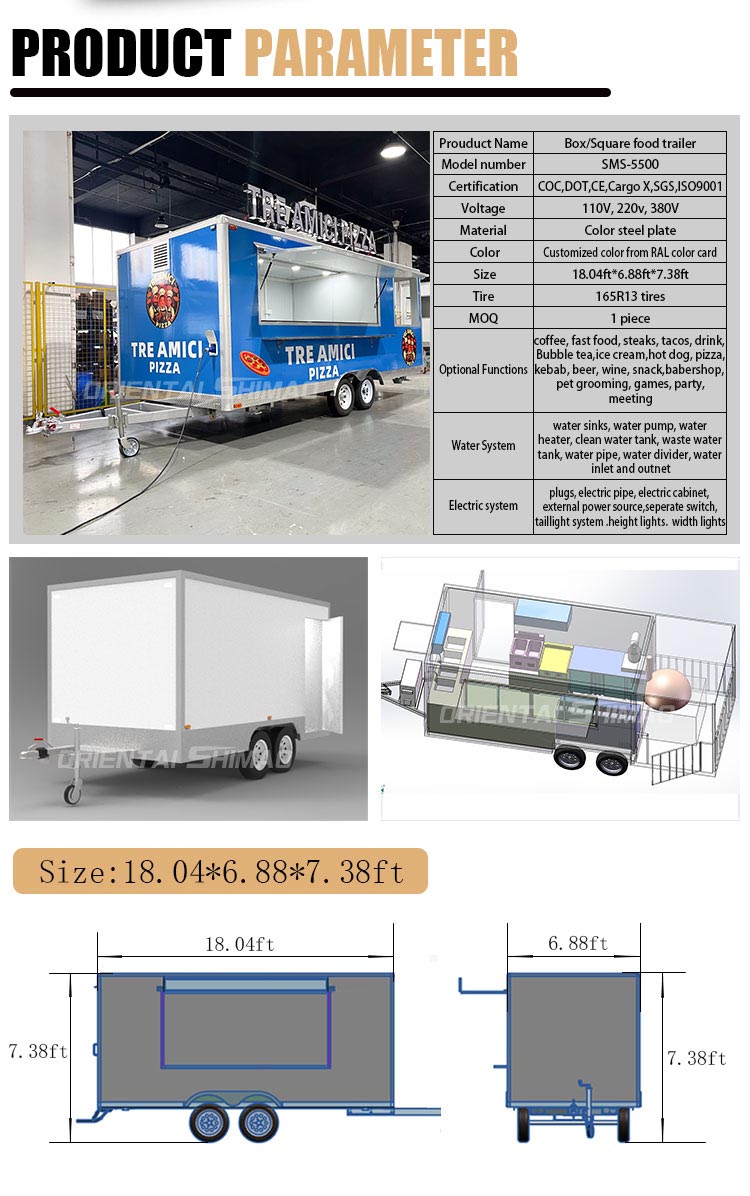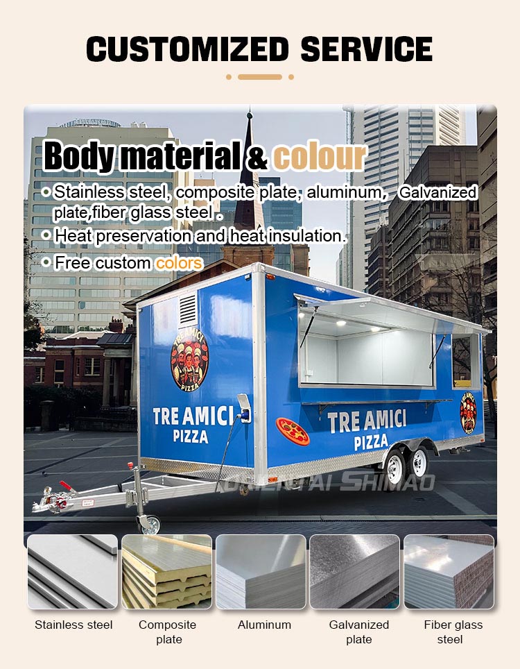 Pemodelan dan Gaya: Pemodelan dan gaya penampilan trak makanan adalah faktor penting untuk menarik pelanggan. Ia boleh disesuaikan mengikut imej jenama pelanggan, ciri -ciri perniagaan atau keutamaan peribadi, seperti reka bentuk yang diperkemas, gaya retro, kesederhanaan moden dan sebagainya.