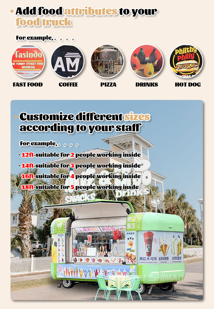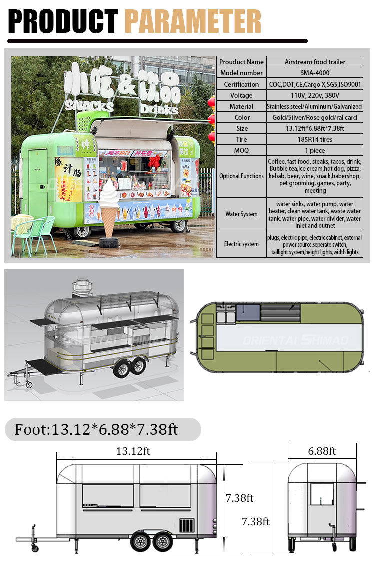 Kami boleh menawarkan treler makanan dengan pensijilan dapur penuh: DOT, CE, SGS, SCI, ISO, COC,