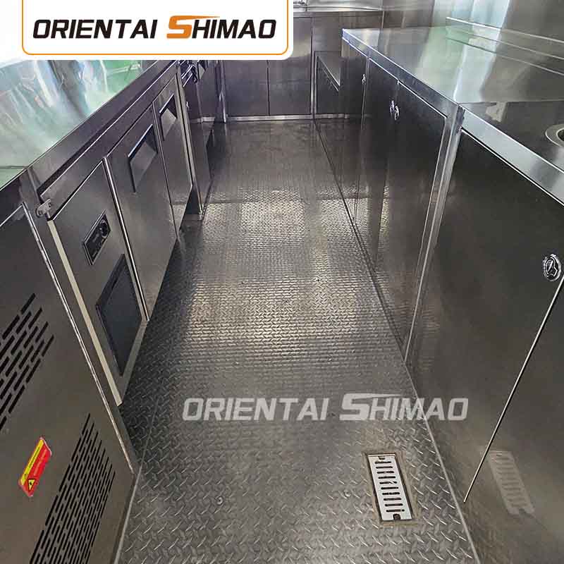 Untuk bahan utama, kami memilih keluli tahan karat 304 berkualiti tinggi, yang terkenal dengan ketahanan kakisan yang sangat baik dan ketahanan yang sangat baik, dan dapat mengekalkan prestasi yang stabil dalam pelbagai keadaan alam sekitar, memastikan produk treler makanan khusus kami dapat mengekalkan kualiti dan fungsi mereka yang sangat baik walaupun dalam jangka panjang dan menghadapi pelbagai cabaran. 304 Rintangan Stainless Steel yang sangat baik terhadap kakisan, supaya treler makanan tersuai tidak mudah dipengaruhi oleh pengoksidaan atau karat, yang sangat memanjangkan hayat perkhidmatannya. Rintangan kakisan yang sangat baik dari 304 keluli tahan karat menjadikan treler makanan tersuai kurang terdedah kepada pengoksidaan atau karat, sangat memanjangkan hayat perkhidmatan mereka.