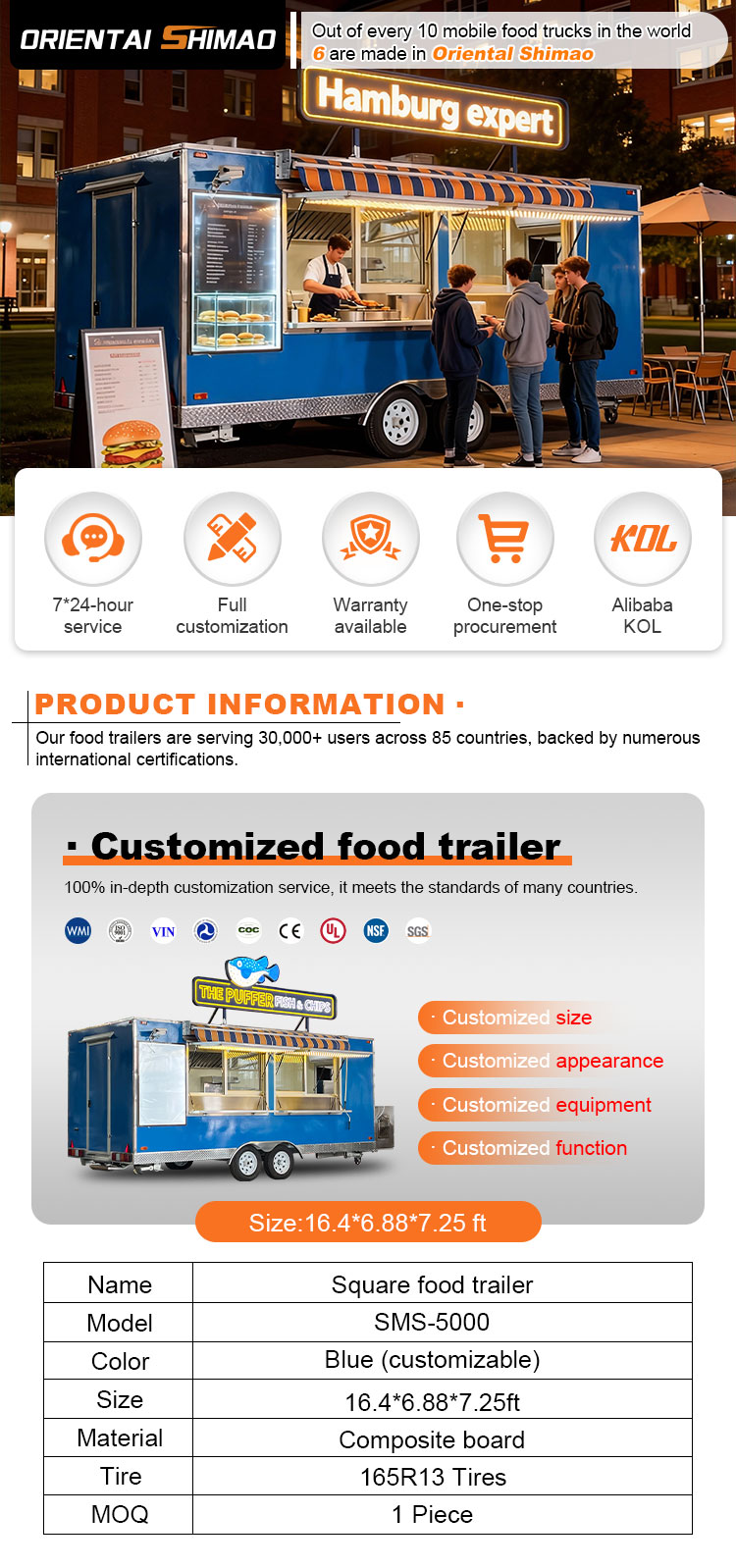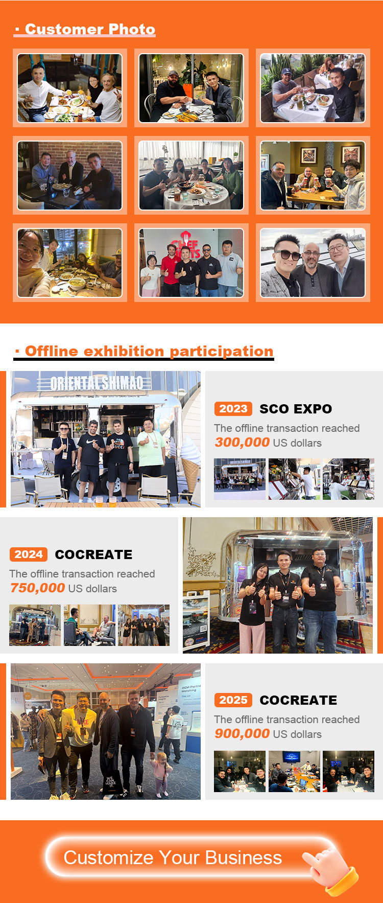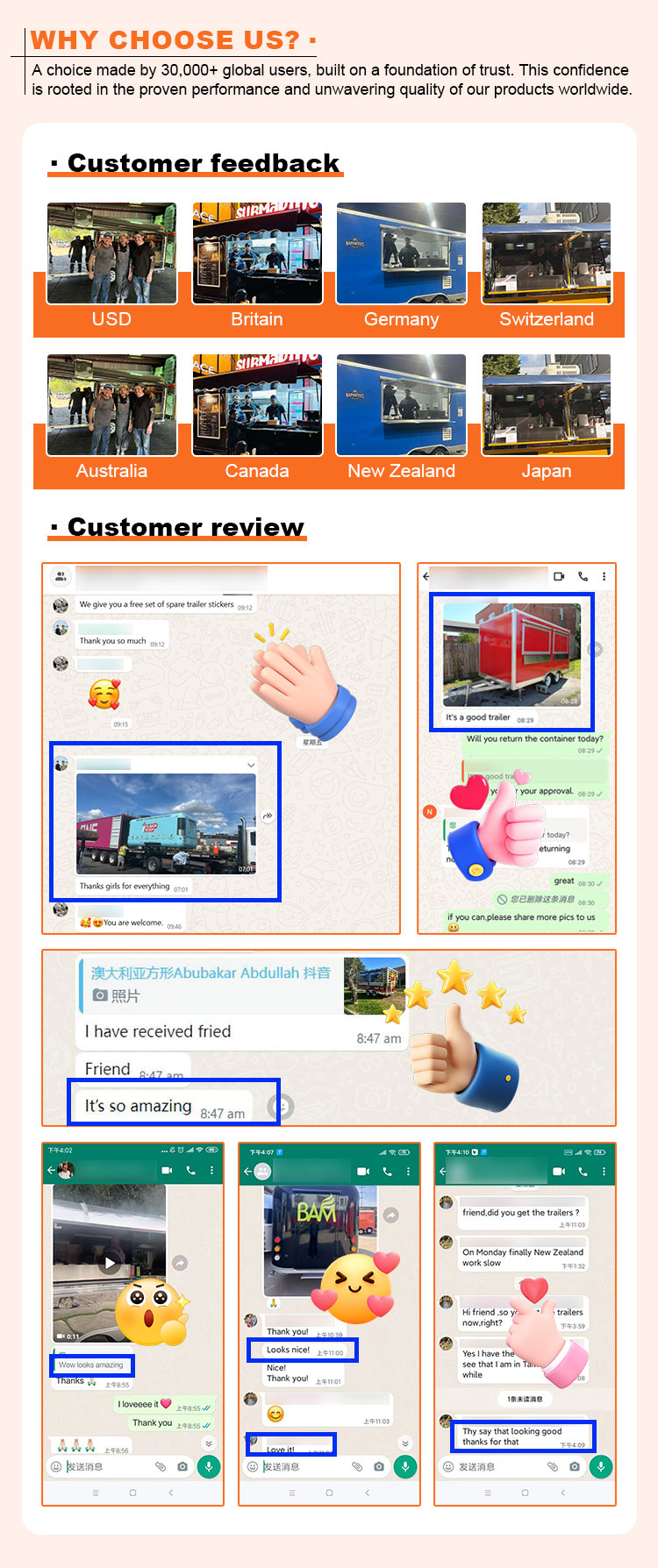Bahan dan proses: Pilih bahan berkualiti tinggi dan proses pembuatan termaju untuk memastikan penampilan trak makanan cantik dan tahan lama.