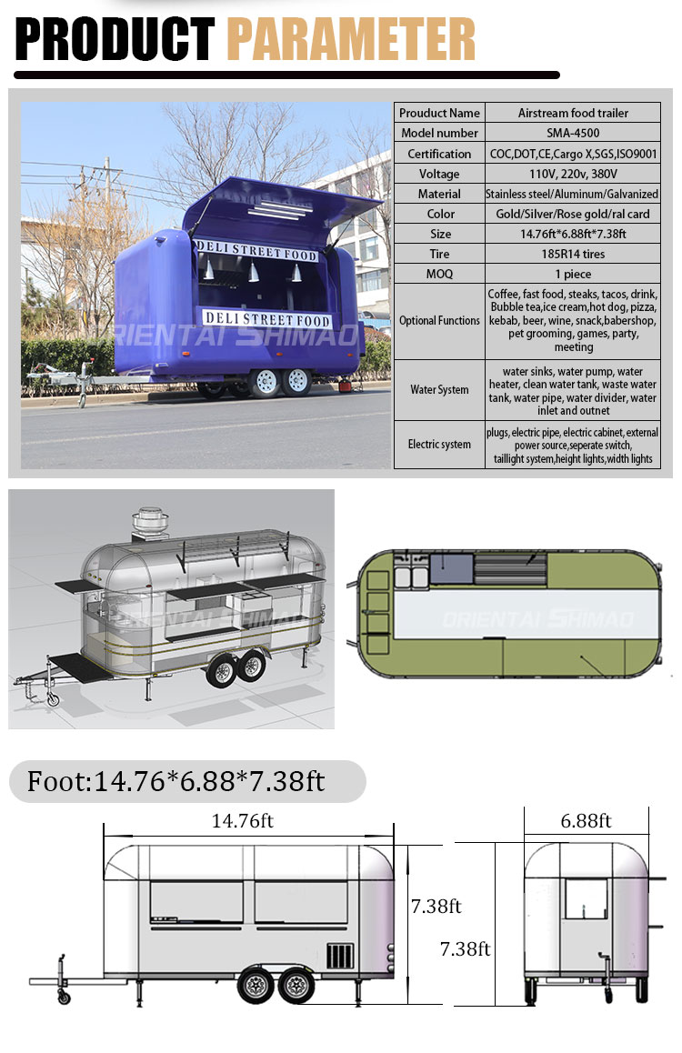 Kami boleh menawarkan treler makanan besar yang dilengkapi pensijilan sepenuhnya: Dot, CE, SG, SCI, ISO, CoC,