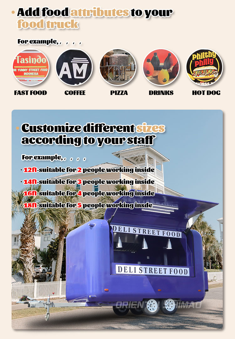 Sekiranya anda memerlukan treler van makanan boleh memulakan perniagaan pada bila -bila masa, di mana sahaja, maka kereta ini sangat sesuai untuk anda, panjang 36 kaki bukan sahaja dapat menampung semua peralatan pada masa yang sama juga dapat menampung meja dan kerusi yang cukup untuk mendapatkan pelanggan untuk datang, keluli tahan karat membolehkan anda, walaupun menunggu banyak pelanggan tidak perlu risau tentang keadaan yang sangat baik. Anda juga boleh digunakan untuk memberi gambaran penuh kepada imaginasi anda, selepas semua, 36ft boleh melakukan banyak perniagaan, tidak perlu bimbang sama sekali, kos efektif, daripada perniagaan tradisional, anda sentiasa boleh mengambil restoran anda untuk pelbagai aktiviti yang meriah, saya percaya bahawa kereta anda tidak kira di mana ia adalah landskap yang cerah!