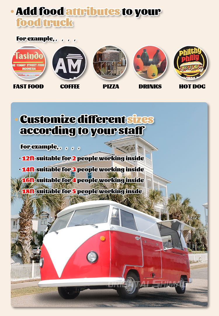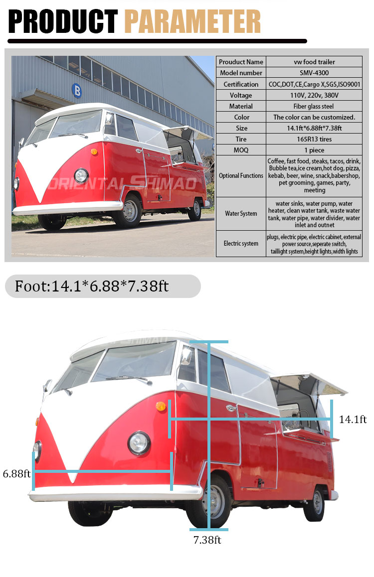 Oriental Shimao High Roof VW Food Truck (Model: SMV-4300) adalah penyelesaian dapur mudah alih mewah yang direka untuk aplikasi katering dan komersil yang serba boleh. Sama ada makanan jalanan, minuman kopi, atau perkhidmatan katering yang pelbagai, treler ini telah dilindungi. Ia dibina menggunakan bahan berkualiti yang dipilih dengan teliti dan proses pembuatan lanjutan untuk memastikan ia memberikan prestasi unggul dan ketahanan yang tahan lama dalam pelbagai persekitaran. Treler makanan Airstream Street tidak diragukan lagi pilihan terbaik bagi usahawan yang ingin membuat tanda mereka dalam industri katering mudah alih.