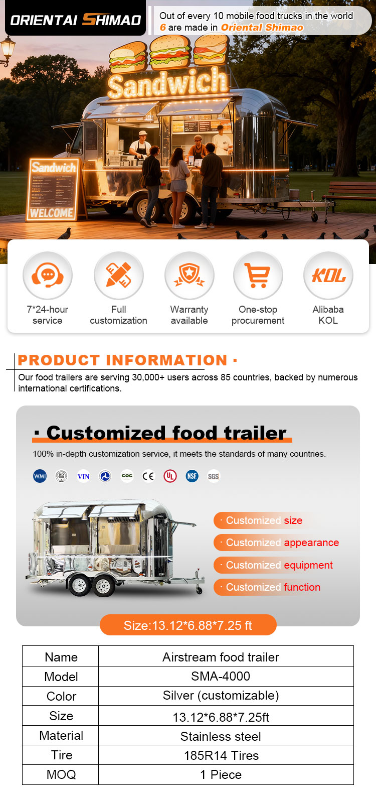 Treler Katering Mudah Alih Troli Makanan Jalanan Hot Dog Dilengkapi Penuh Trak Makanan Treler Makanan