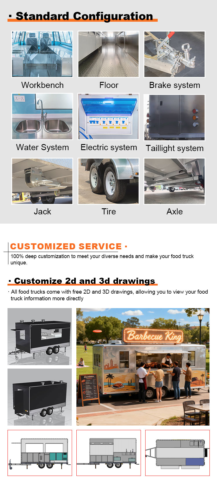 Untuk bahan utama, kami memilih keluli tahan karat 304 berkualiti tinggi, yang terkenal dengan ketahanan kakisan yang sangat baik dan ketahanan yang sangat baik, dan boleh mengekalkan prestasi yang stabil dalam pelbagai keadaan persekitaran, memastikan produk Treler Trak Makanan Mudah Alih kami dapat mengekalkan kualiti dan fungsinya yang sangat baik walaupun dalam jangka panjang dan menghadapi pelbagai cabaran. Ketahanan yang sangat baik keluli tahan karat 304 terhadap kakisan, supaya Lori tidak mudah terjejas oleh pengoksidaan atau karat, yang memanjangkan hayat perkhidmatannya. Rintangan kakisan yang sangat baik bagi keluli tahan karat 304 menjadikan Lori kurang terdedah kepada pengoksidaan atau karat, memanjangkan hayat perkhidmatannya.