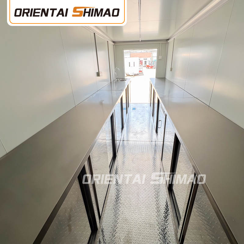 Dalam reka bentuk struktur dalaman, kami juga menunjukkan ketukangan yang luar biasa. Proses artikulasi yang unik menjadikan hubungan lancar antara dinding dan meja kerja, reka bentuk ini bukan sahaja meningkatkan estetika keseluruhan, tetapi juga memudahkan kerja pembersihan, tanpa menggunakan pelekat seperti gam, mengelakkan masalah seperti gam terbuka, diskolourasi, dan pada masa yang sama juga mengurangkan kemungkinan kotoran dan penciptaan. Perhatian terhadap perincian dan kawalan ini adalah kunci kepada kemampuan trak makanan Oriental Shimao Organik untuk menonjol dalam pasaran yang kompetitif.