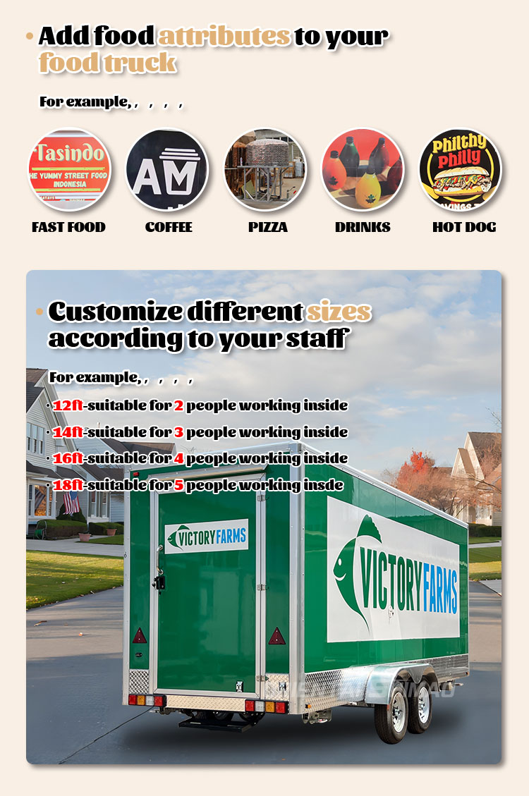 Penyesuaian saiz: Di luar sempadan tradisional, kami memecahkan kerangka saiz trak makanan konvensional dan memberikan anda kemungkinan penyelesaian penyesuaian saiz yang tidak terhad. Sama ada anda sedang mencari trak makanan mini yang kecil dan indah, mudah untuk mengembara melalui lorong -lorong bandar, atau restoran mudah alih mewah yang ingin mempunyai ruang yang luas untuk menampung lebih banyak pelanggan dan peralatan, kami dapat mengukur dengan tepat dan merancang dengan teliti mengikut keperluan khusus anda untuk membuat saiz trak makanan yang memenuhi keperluan sebenar dan penuh kreativiti.