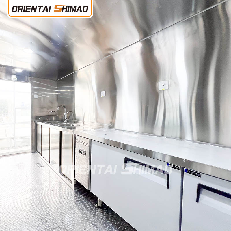 Interior Keluli Tahan Karat: Bahagian pedalaman diperbuat daripada keluli tahan karat, memastikan dalaman yang kuat dan tahan lama yang mudah dibersihkan dan mengekalkan dan memenuhi standard kebersihan makanan. Penggunaan keluli tahan karat bukan sahaja meningkatkan hayat perkhidmatan trak makanan, tetapi juga memastikan kebersihan dan keselamatan proses penyediaan makanan.