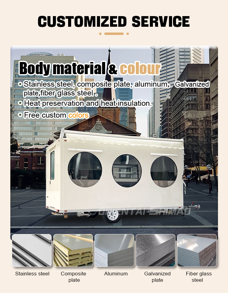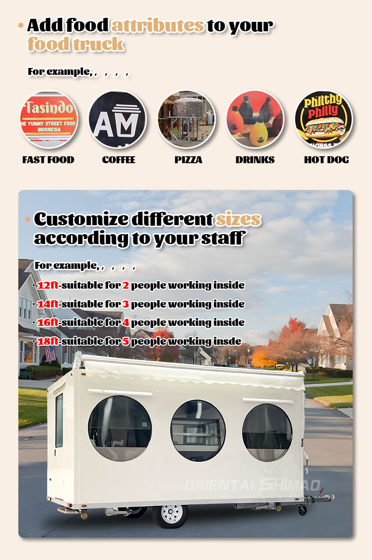 Pemodelan dan Gaya: Pemodelan dan gaya penampilan trak makanan adalah faktor penting untuk menarik pelanggan. Ia boleh disesuaikan mengikut imej jenama pelanggan, ciri -ciri perniagaan atau keutamaan peribadi, seperti reka bentuk yang diperkemas, gaya retro, kesederhanaan moden dan sebagainya.